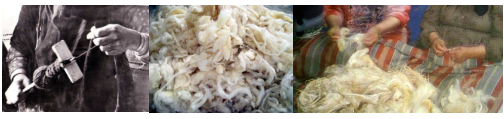 تبدأ عملية الغزل والنسيج في الربيع عندما يجز الرجل صوف الاغنام لتحضيرها للصيف او حين يكون الوقت معتدلا. ويقوم الرجال بجمع صوف كل حيوان لوحده وتسمى جزة. وتحتاج النساء الى حوالي عشرين جزة لعمل بساط واحد ويجمع النساء الصوف حسب الوانه الطبيعية.