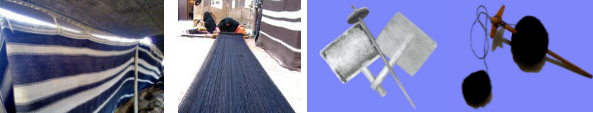 الصوف وشعر الحيوانات، وتستعين المرأة البدوية بالأدوات التالية: